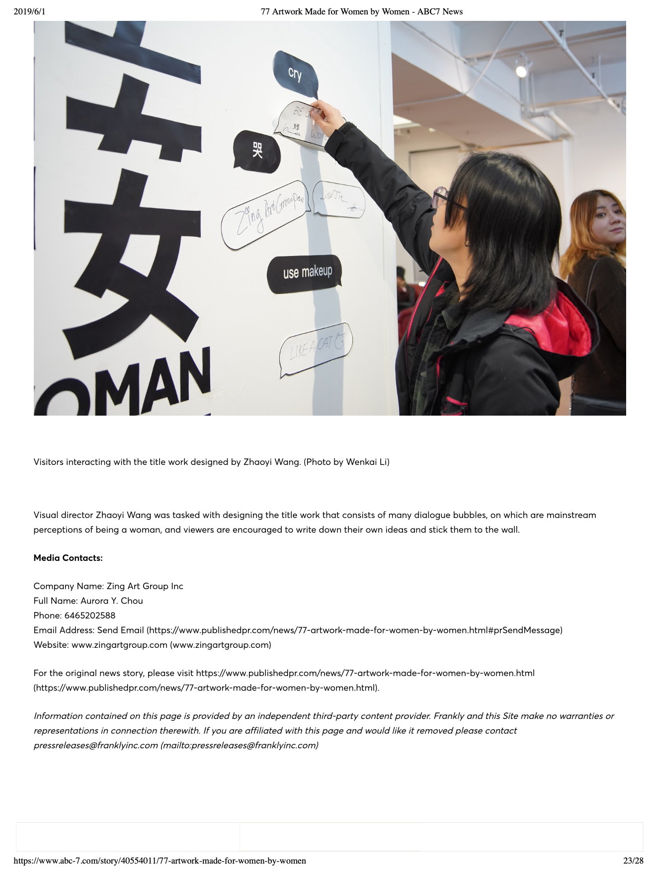 “WAW/何谓女” exhibition in New York, 2019